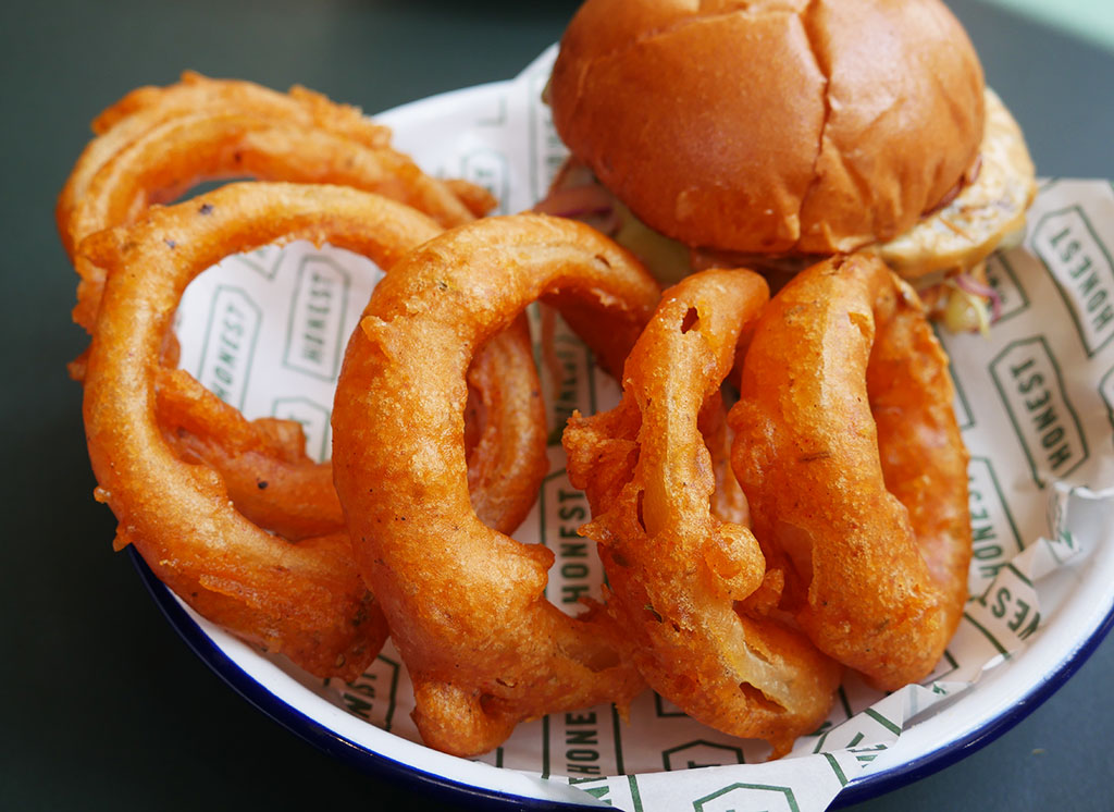 These Onion Rings didn’t quite do it for us. Perhaps it was the gluten-free batter, but its loose and disparate, overly crunchy texture, which erred on the oily side, left the onions therein greasily saturated.