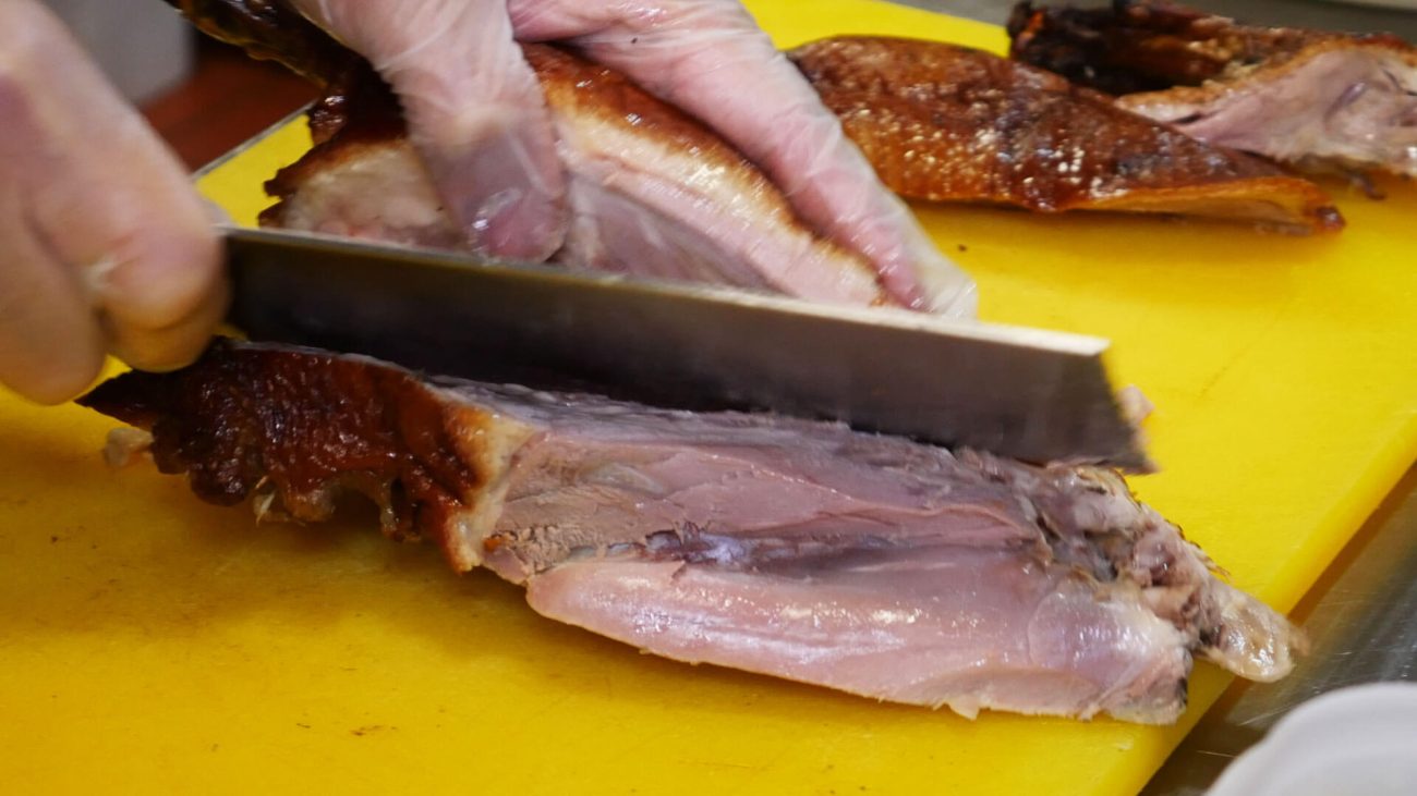 RECOMMENDEDWe had to collectively suppress our excitement when confronted by this thing of beauty. The glistening bronze sheen of the skin, with that unmistakable aroma of duck, had us giddy with delight even before tucking in.