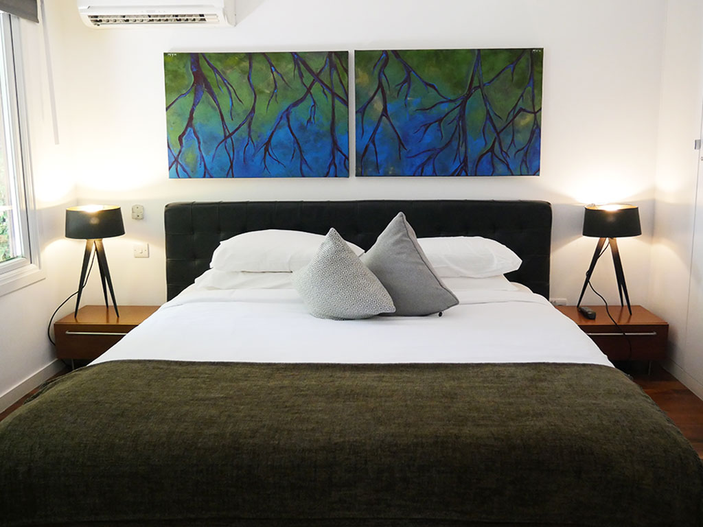 While each of the 29 rooms are individually decorated (all with king-size beds), it’s those finer details – quirky, colourful furnishings; fine art canvases by artist Leon de Caro; flat-screen TVs, and in-room tea- and coffee-making facilities – which help set Hotel 55 apart from the competition.