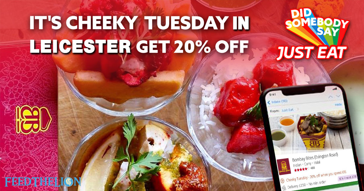 0 Comments 21 Apr '20 Bombay Bites Braunstone Gate 20% off Just Eat ‘Cheeky Tuesdays’ Leicester Bombay Bites Braunstone Gate 20% off Just Eat ‘Cheeky Tuesdays’ Leicester Share With: