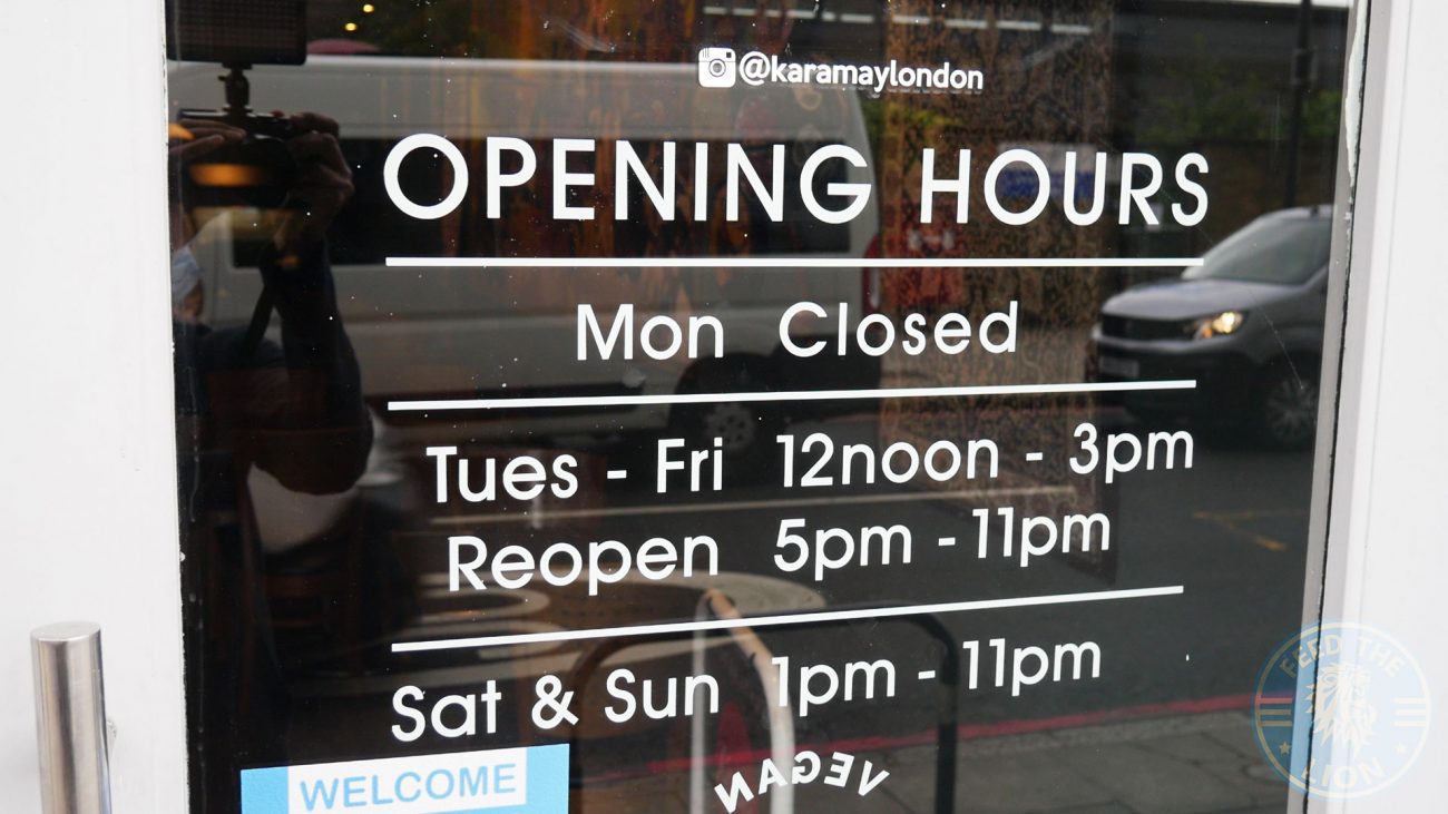 Opening Hours: Mon CLOSED | Tue-Fri 12:00-15:00, 17:00-22:00 | Sat-Sun 13:00-22:30