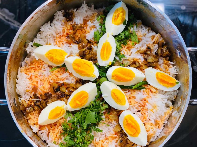- After which the lid is placed on firmly and the heat is reduced to minimum for around 35-40 mins till the rice is fully cooked.