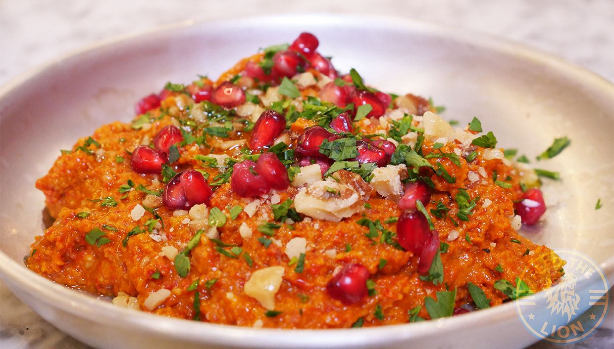 Muhammara – Roasted red pepper, walnuts, pomegranate molasses, chili paste, £9.00; with Cauliflower £10.25