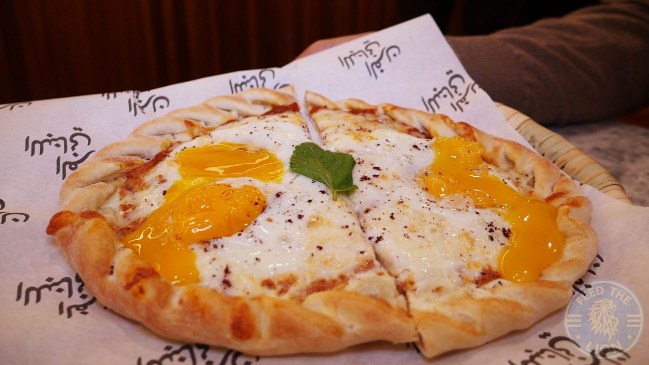 With “farm fresh eggs” cracked on top and seasoned with pepper and spices, this gorgeous looking Lebanese flat bread is essentially a clever modification of the classic Shakshuka breakfast.