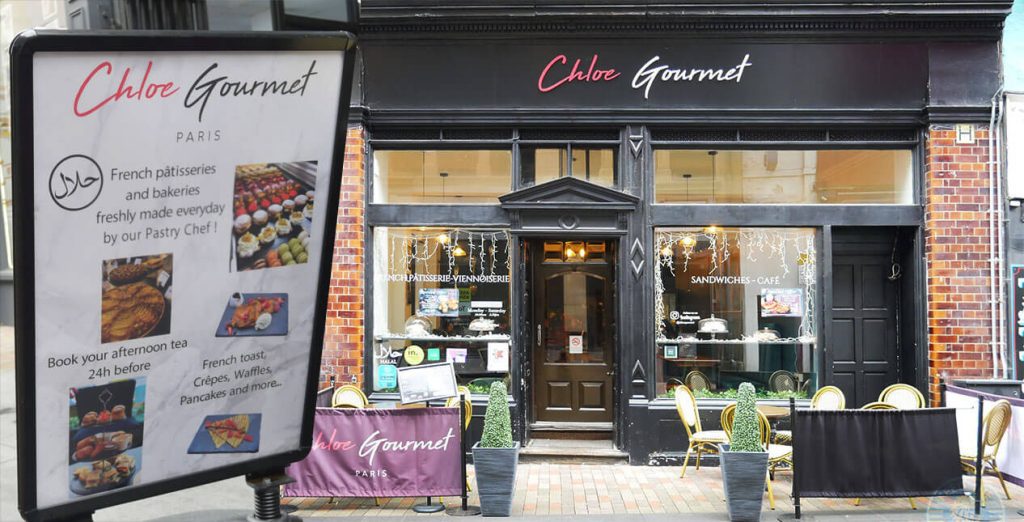 HALAL STATUS Fully HalalPromising “little Paris in the centre of Leicester”, that is 10-12 Cank Street, Chloe Gourmet is both a cafe and a French patisserie which sells pastries such as tarts, cakes, entremets, in addition to salads, bagels and sandwiches like the famous croque-monsieur.