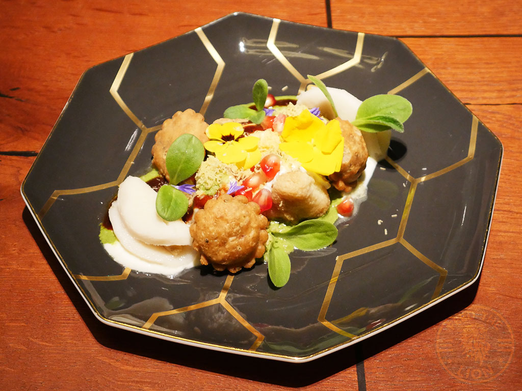 As such, while we all thoroughly enjoyed the textural interplay – ranging from the delicately spiced, round biscuits, to the small and saturated dumpling balls, which went so well with the peculiar white, bao bun-shaped, sugar dough – the tastes and flavours were all conventionally predictable.
