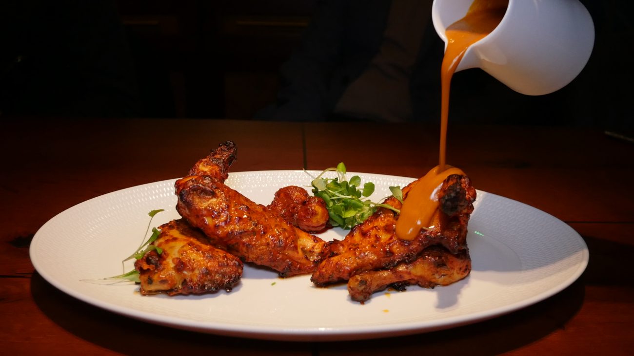 Murgh Musallam – Spice-roasted whole corn-fed poussin, braised plum tomatoes, saffron, almonds and poppy seeds gravy, £35