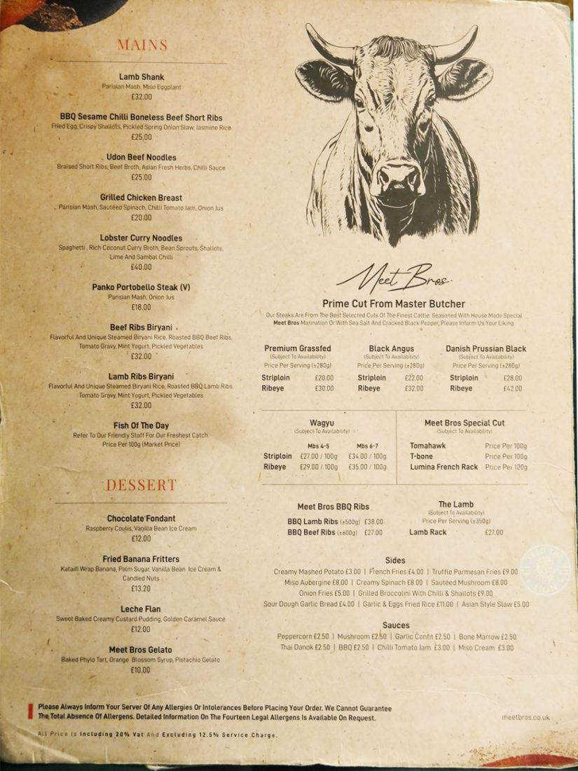 With such a diverse menu, inspired as it is by what Meet Bros call "Asian-Fusion cuisine", this ostensible steakhouse certainly talks a good game with its impressive range of steaks, which includes the sought-after Wagyu. But, while their starters were magnificent, and their desserts brilliantly innovative, their steaks didn't live up to expectations. And, of course, when you're paying the kind of prices Meet Bros are demanding, you expect your steaks to be on point.