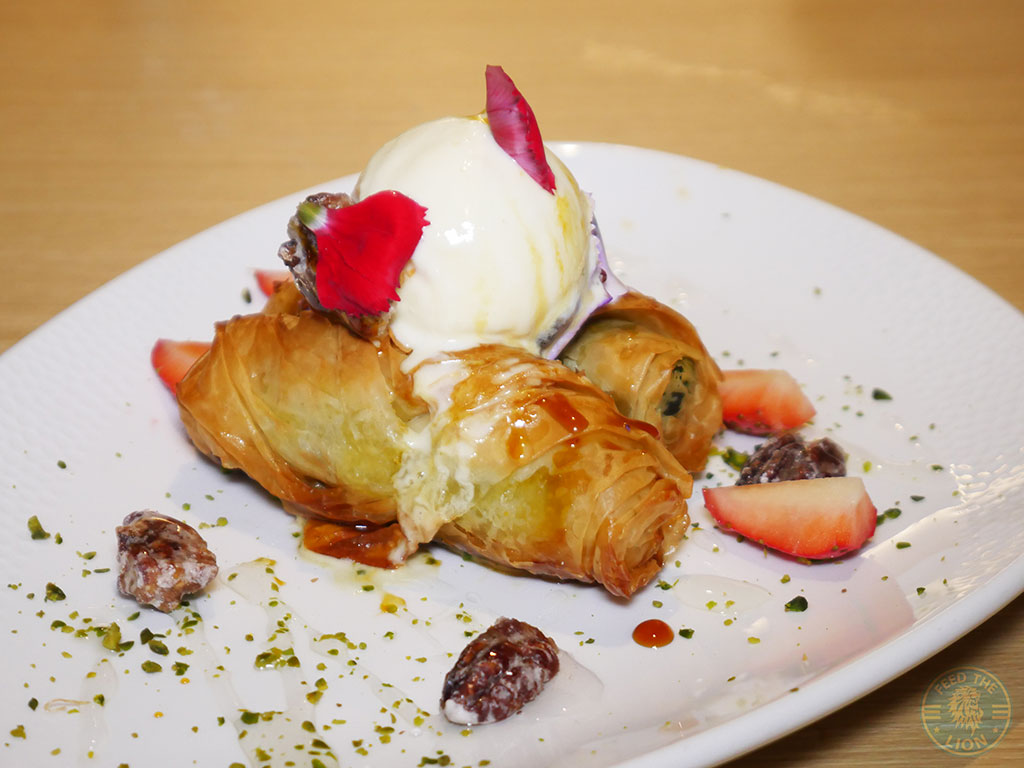 RECOMMENDEDTheir signature dessert was a brilliantly executed dessert, with the crispy-cum-crunchy phylo pastry actually hiding a piece of baklava, and the orange blossom syrup and pistachio gelato adding that extra dimension.