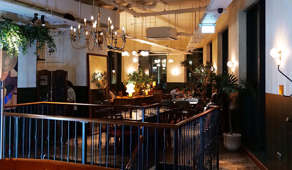 With a waiting area and a huge non-alcoholic bar situated downstairs, the action takes place upstairs amidst a spacious setting, with a contrasting colour scheme that succeeds in creating a moody atmosphere.