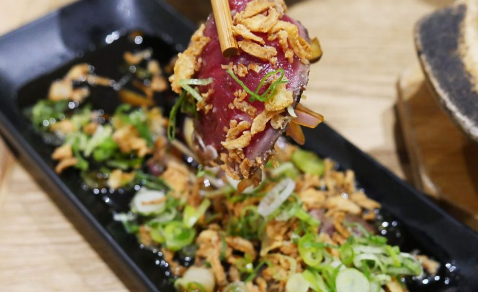 While the slithers of sliced beef were again smothered in plenty of those crispy flakes and thinly diced spring onions, which provided a good textural contrast, it was the simplicity of the Kuwayaki-style cooking that impressed us.