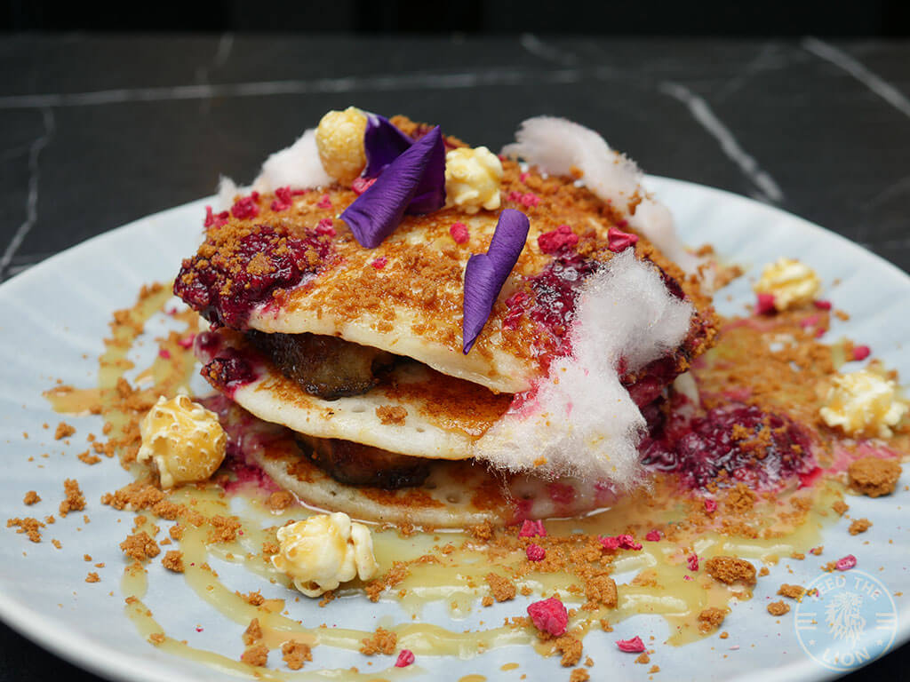 If you’re looking for something left-key yet playful, then Noir’s Stack It Up, which has homemade fluffy biscoff and caramel pancakes topped with berries, cherries, candy floss, and popcorn, is truly inspired.
