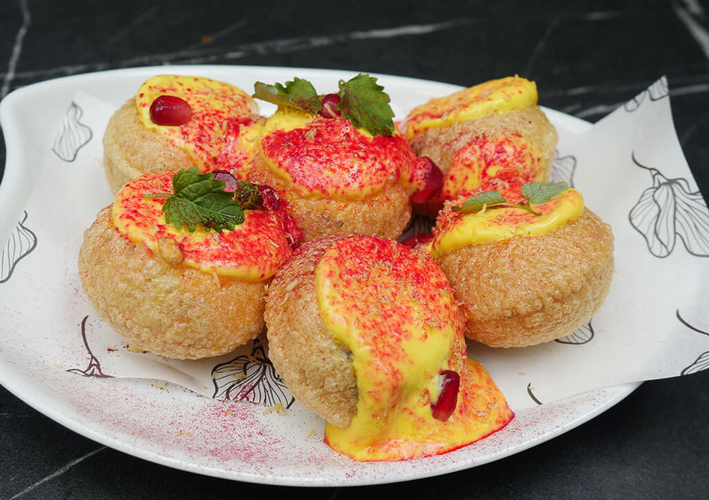In the case of their Preeti Puri, there’s either the punchy mixed berry and tamarind pani puri (above) or the more savoury zaffrani dahi sev puri. Whichever one you opt for, prepare your taste buds to be wowed.