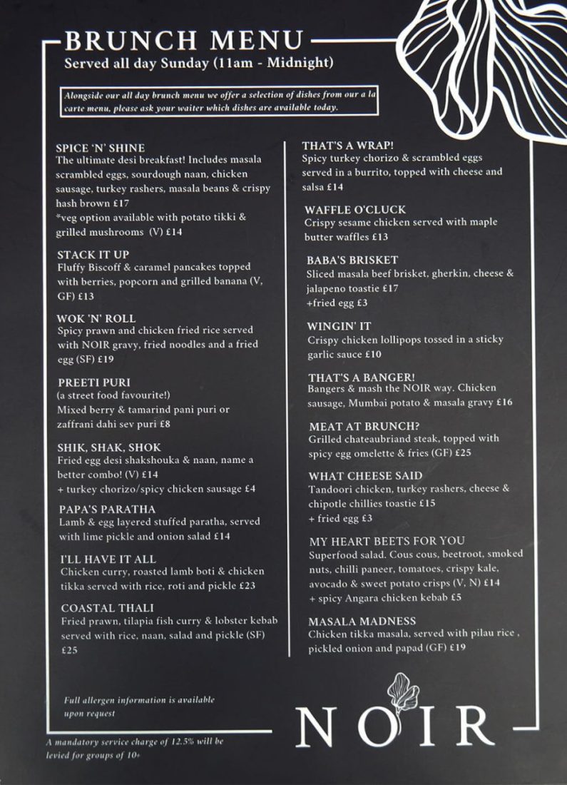 Well Noir has out done itself again with the introduction of an incredible Sunday brunch menu, which is available all-day, the likes of which will not be found elsewhere.