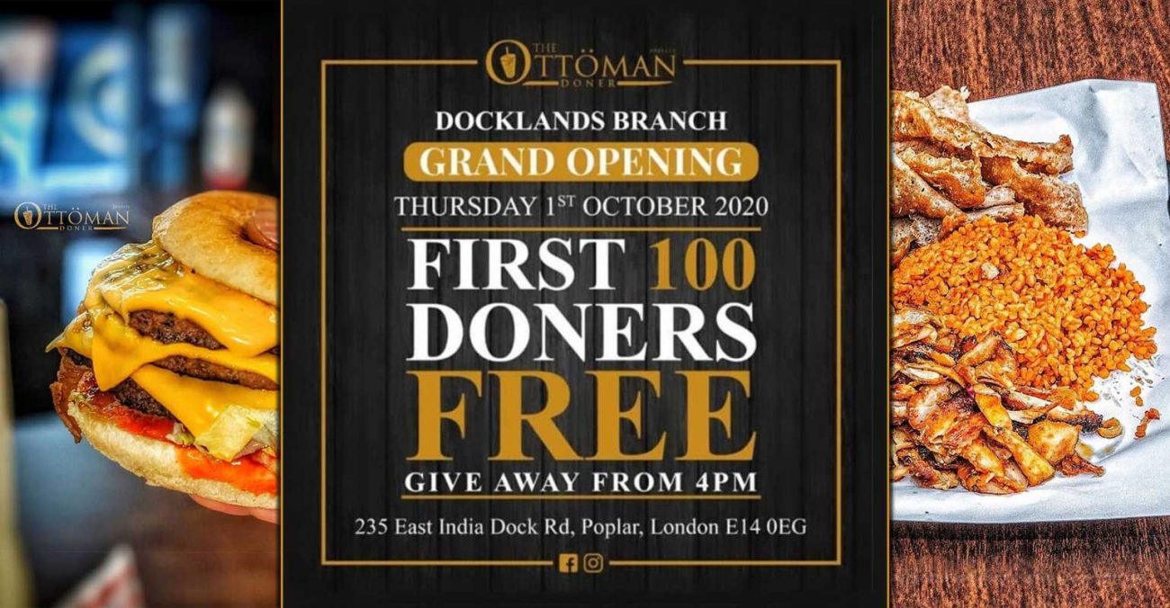 Located on East Indian Dock Road, the restaurant’s grand opening will be on the 1st of October at 4pm with 100 customers receiving a free doner each on a first-come first-served basis.