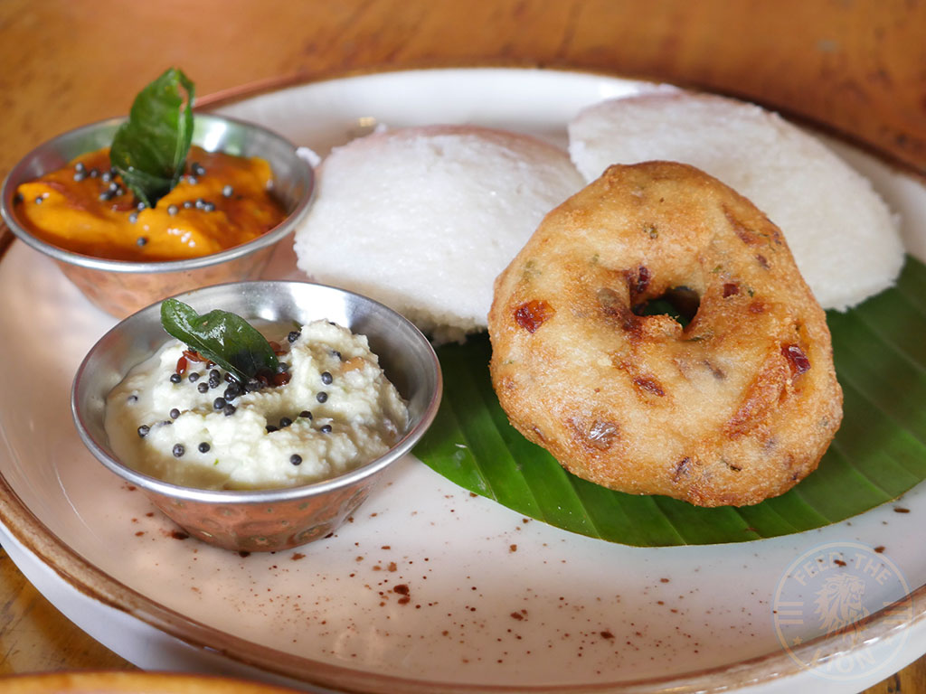 The gently spiced Medu Vada fritter turned out soft on the inside and crispy on the out, while the pair of idli cakes were a tad denser than they should have been. Of the two, we’d opt for the Baby Dosa.