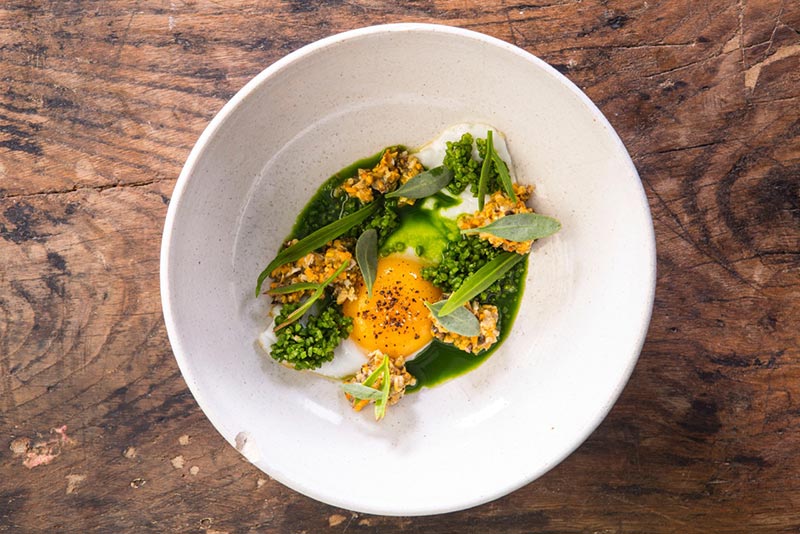 - Roast Kale with Cod Roe; Fried Duck Egg with Chopped Mussels and Parsley