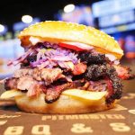 Smoked Brisket Melt – 16 hour smoked premium brisket, served with, Monterey Jack cheese, Hot Nacho Sauce, Jalapeños & Gherkins, £10.50