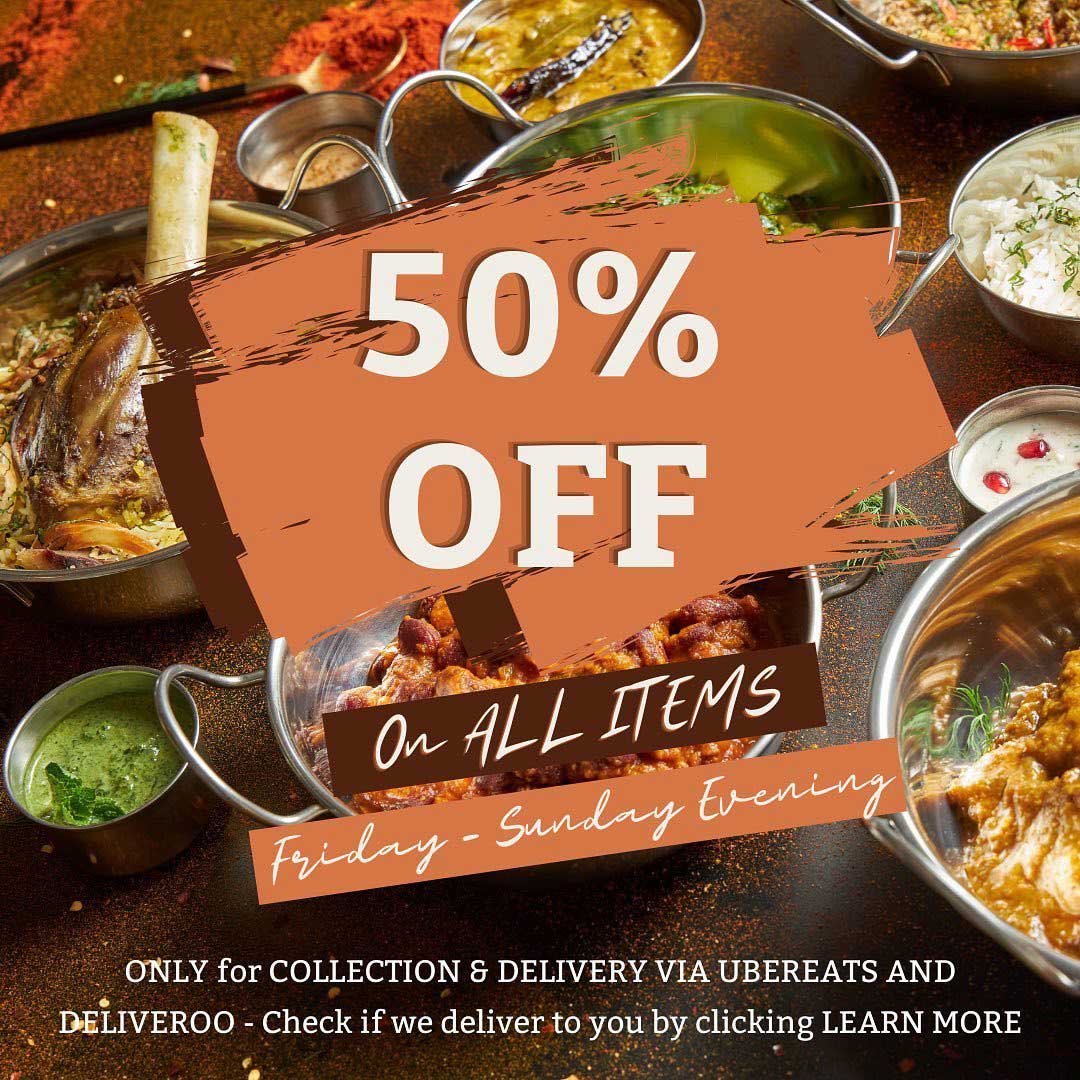 Dill Desi in Wood Green, north London, have a promotion running with UberEats and Deliveroo till the end of this month – 50% off on all items! Enjoy indian food straight to your door from Friday to Sunday evening. Delivery and collection only. Visit: https://linktr.ee/dilldesilondon