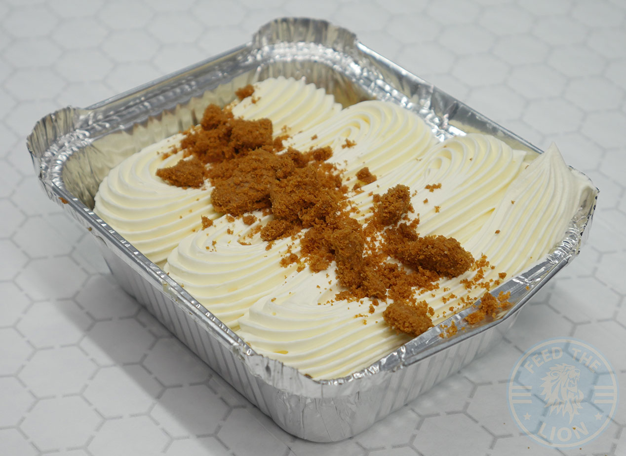 A perfectly made, light and airy Lotus Milk Cake topped with plenty of quality fresh cream.