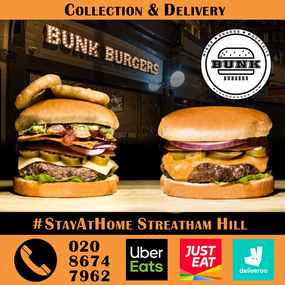 Bunk Burgers Streatham Brixton London Delivery Takeaway