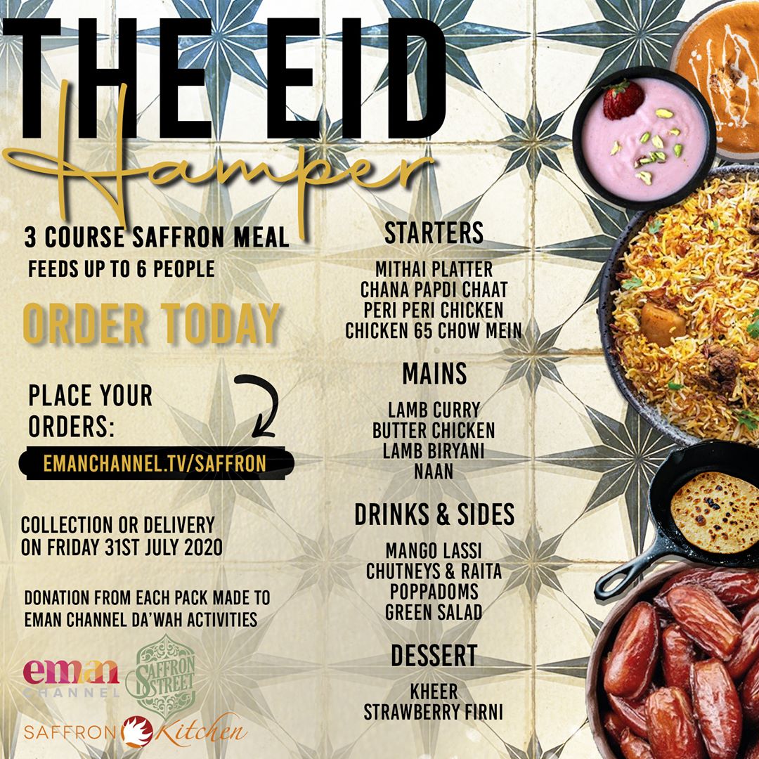 Place your order by visiting: www.emanchannel.tv/saffron, with whom they’re collaborating. Free collection is available or delivery to east and north London only for £10 on Eid day.