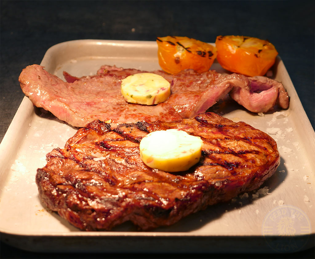 After liberally smearing the top of this pan fried steak with the accompanying knob of herbaceous garlic and tarragon butter, our knife didn’t so much cut as glide through.
