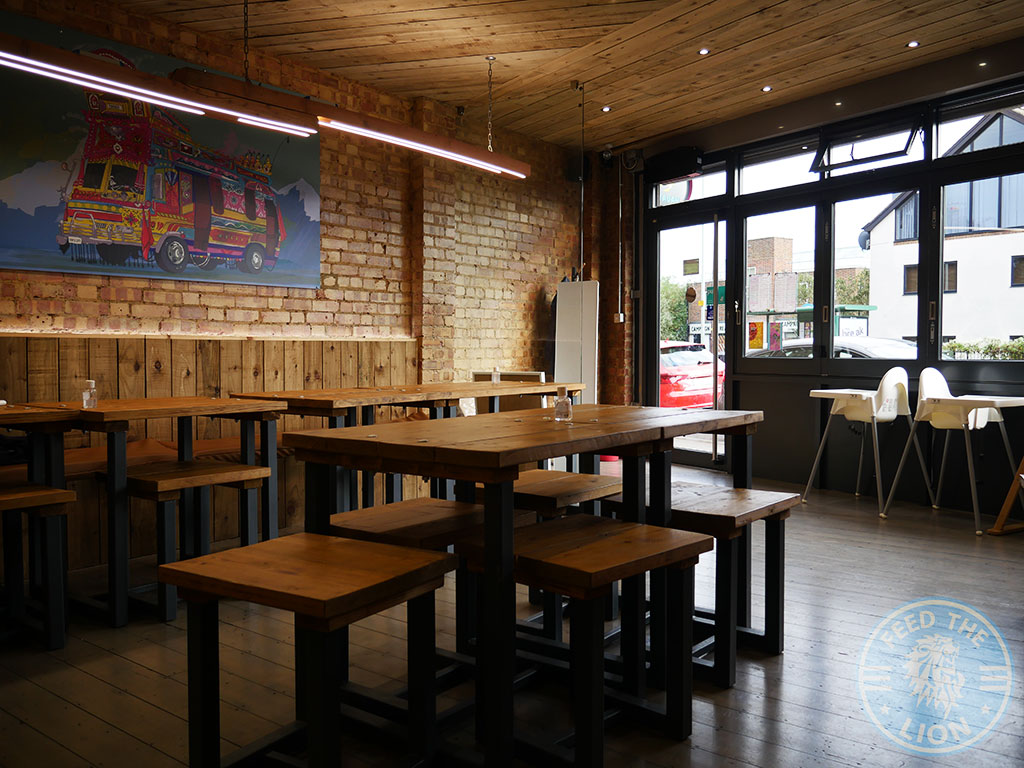 The interior’s focal point though is a large wall mural painted by talented local artist Jo Bird which depicts one of those colourfully ornate, traditional Pakistani buses.