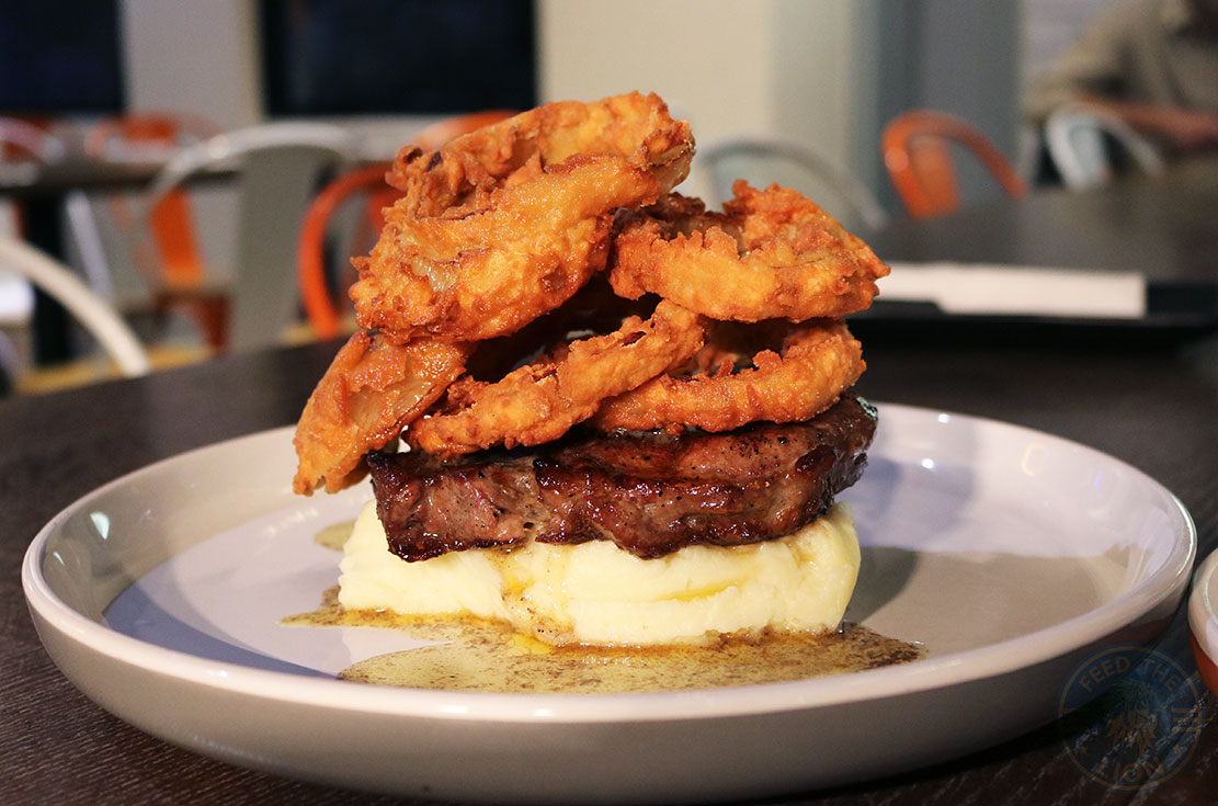While the onion rings were thin, crunchy and addictive, and the mashed potato creamy and smooth, the steak was in a class of its own.