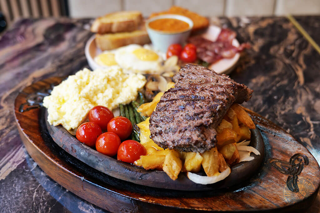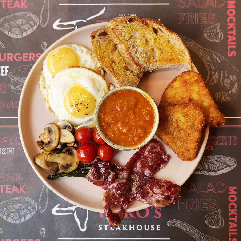 Toro’s Special Sizzling Breakfast – Steak, scrambled eggs, mushrooms, tomatoes, breakfast potatoes, £15